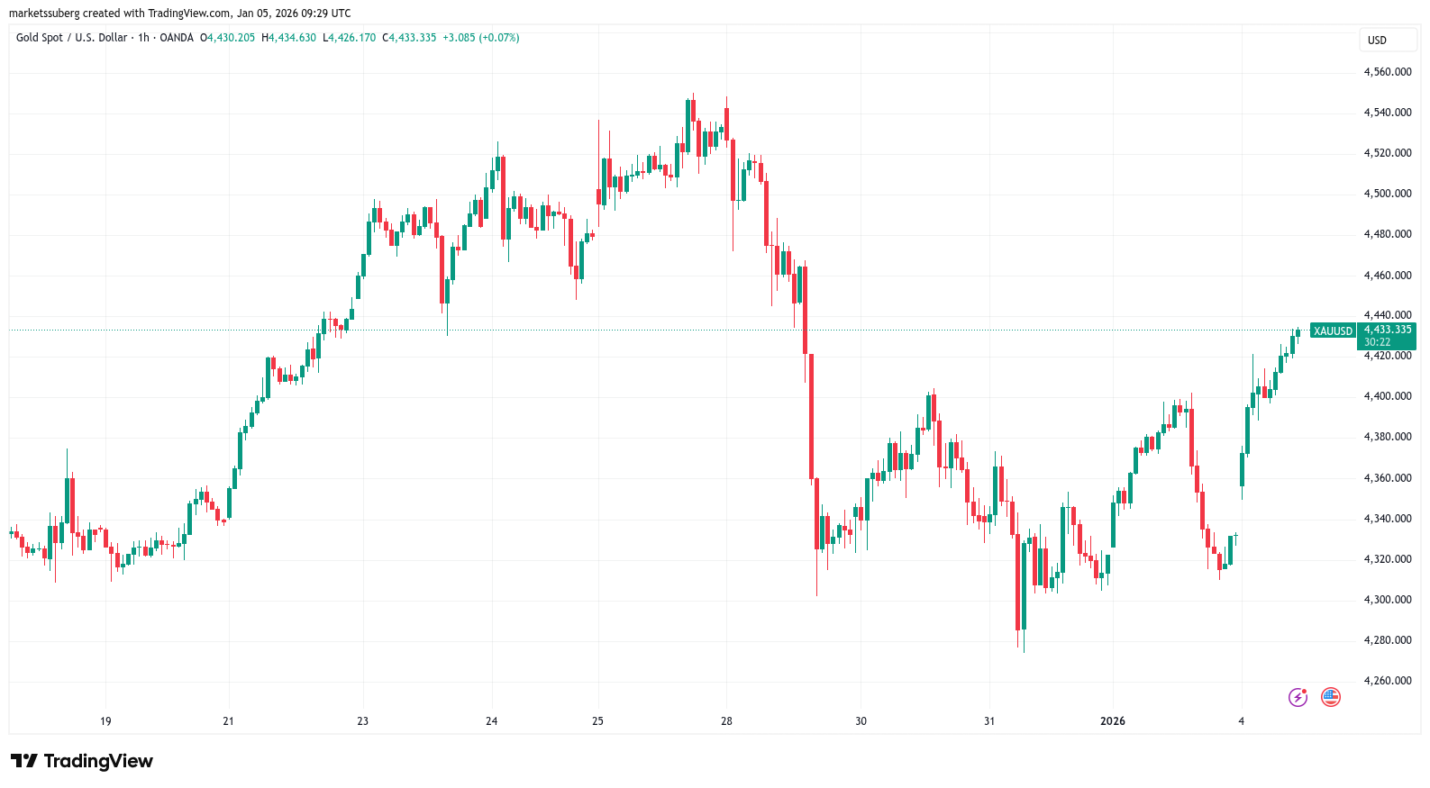 XAU/USD was up 2% at the time of writing on Monday, moving toward a rematch with December’s all-time highs of $4,450 per ounce.