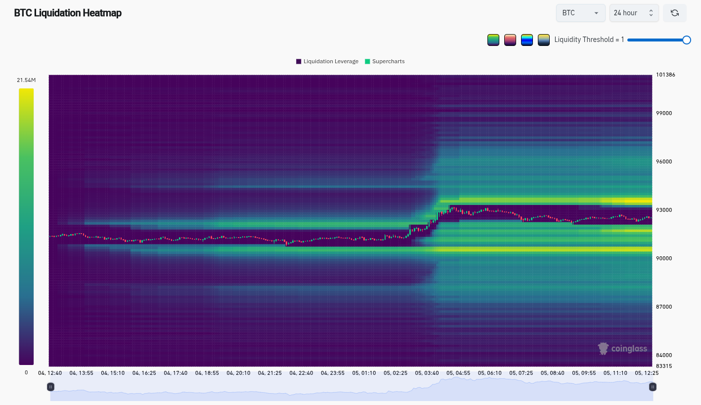 The latest data from monitoring resource CoinGlass, meanwhile, puts 24-hour crypto short liquidations at $250 million. Liquidity was piled high into the weekly close, with $93,700 bulls’ next upside target.