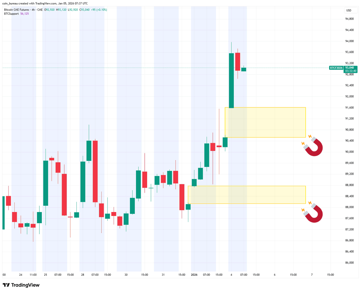 “Two CME gaps are sitting below price at $90,500–$91,600 and $88,200–$88,800,” Bitcoin education resource Coin Bureau confirmed.