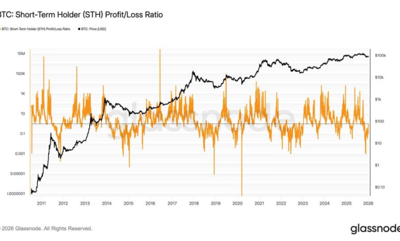 As bitcoin tumbled in late November to nearly $80,000, the ratio between short-term holder supply in profit and short-term holder supply in loss fell to levels that have historically coincided with major or local bear market bottoms.