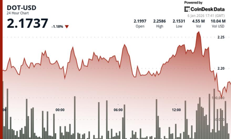 DOT volume ran 17% higher than the 30-day moving average, suggesting institutional distribution rather than retail capitulation, according to CoinDesk Research’s technical analysis model.