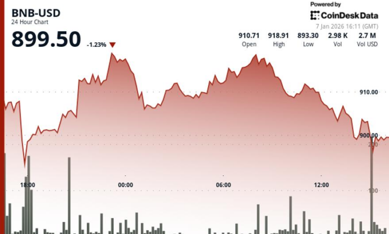 BNB falls below $900 even after network upgrade, ecosystem developments as market declines