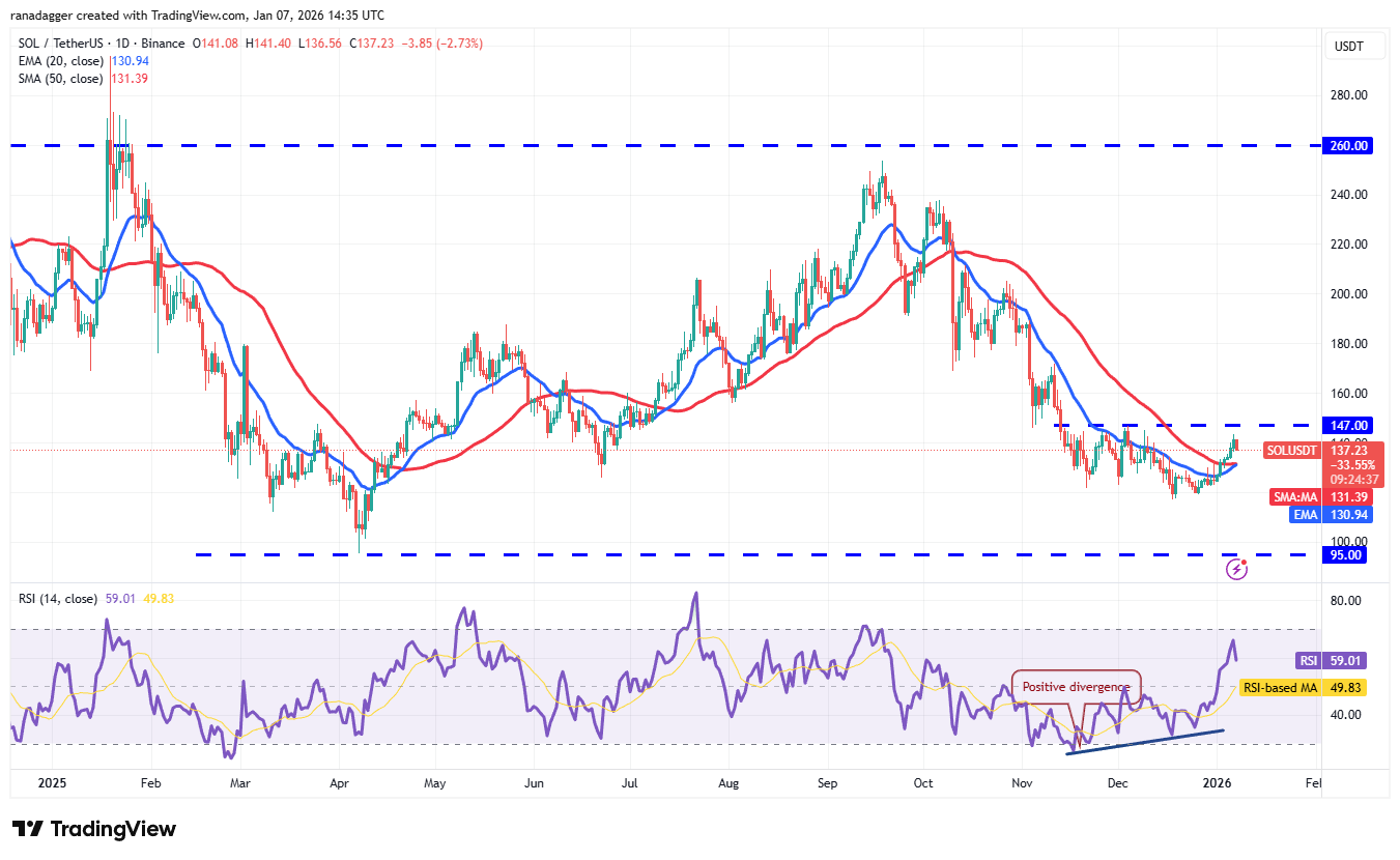 Solana’s (SOL) recovery is facing selling near $147, but a positive sign is that the bulls have not ceded much ground to the bears.