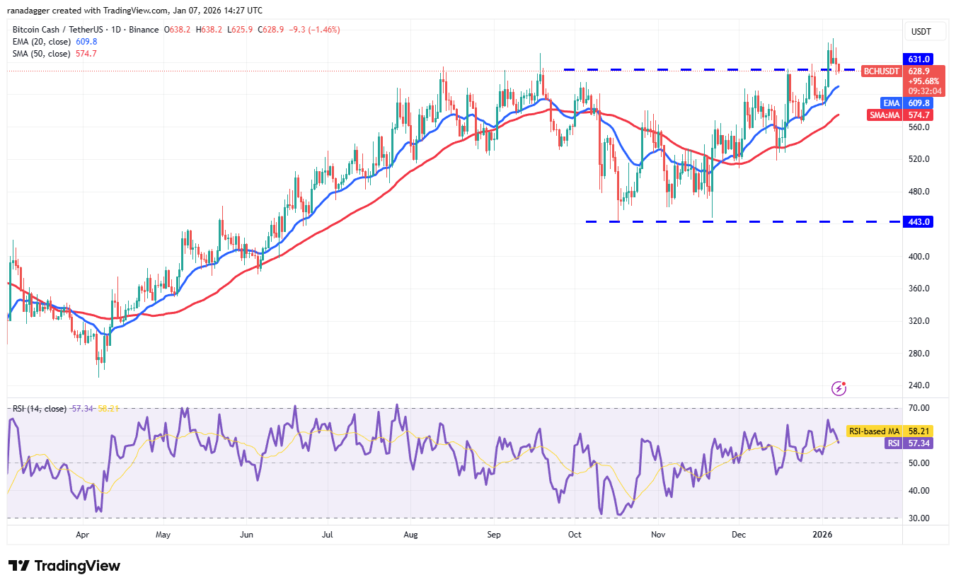 If the Bitcoin Cash price turns up from the $631 level or the 20-day EMA ($609), it indicates that the bulls remain in charge. The BCH/USDT pair could rally to $651 and eventually to the stiff overhead resistance at $720.