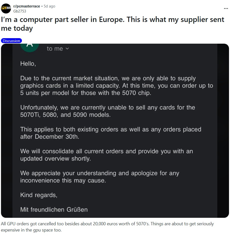 GPUs remain scarce because key components needed to build them are in short supply. High-bandwidth memory (HBM), a critical part of modern AI GPUs, is expected to be in shortage through at least 2026, according to components distributor Fusion Worldwide. Because HBM is required for training and running large AI models, shortages directly cap how many high-end GPUs can be shipped.