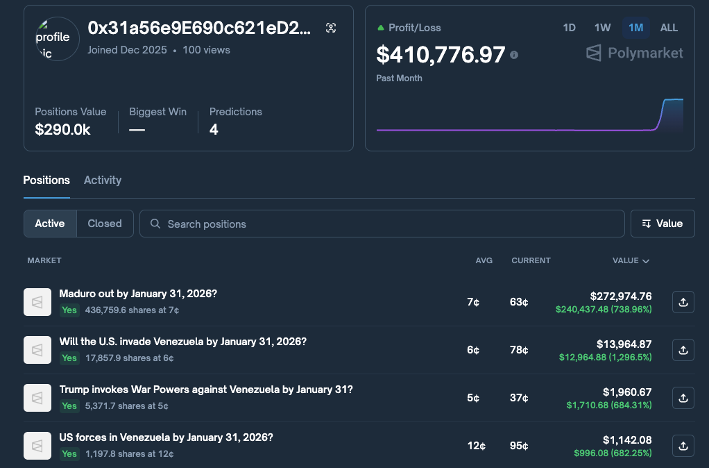 Polymarket User Profits And Disappears After Big Maduro Bet