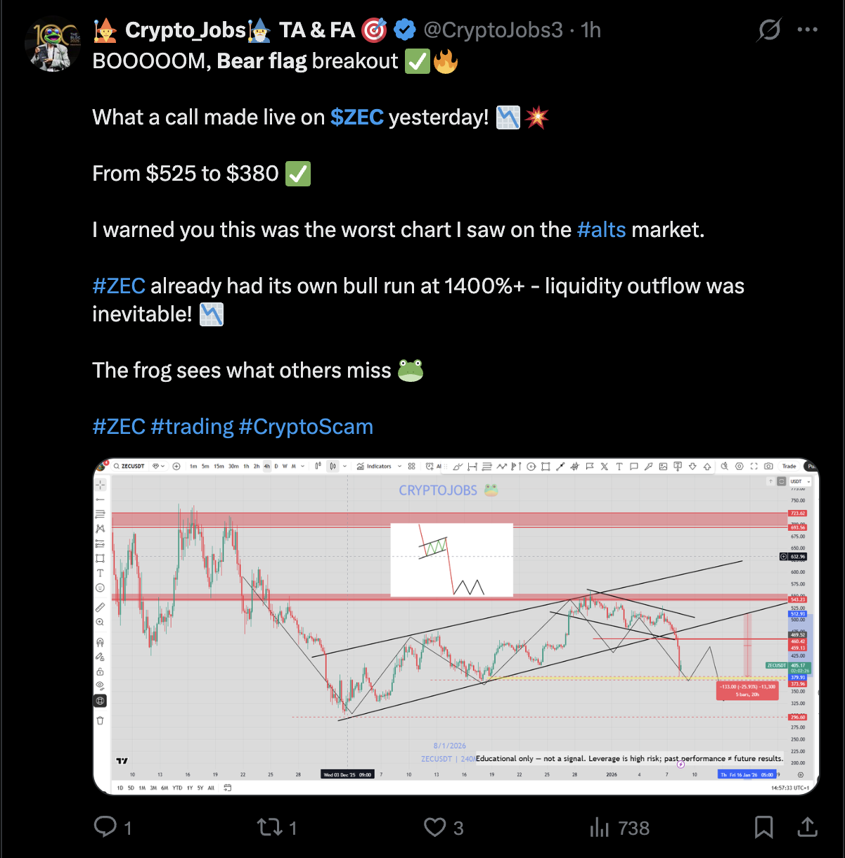 Zcash bear flag target: $275–$300