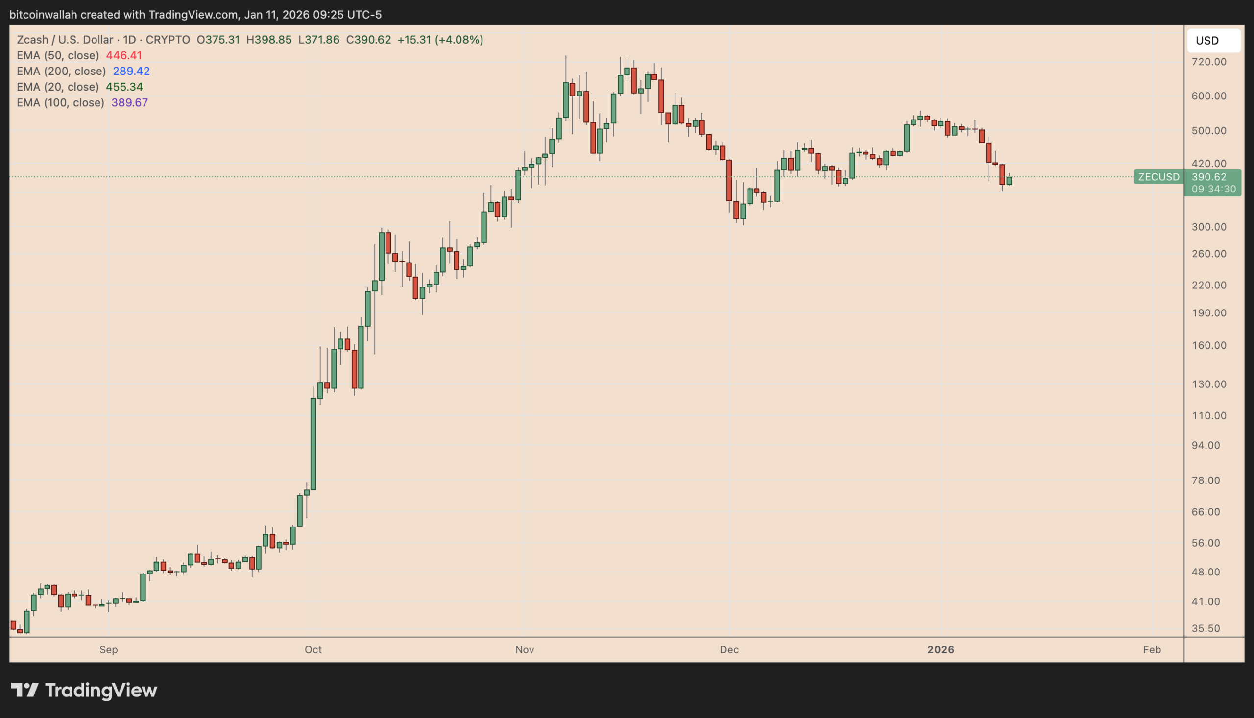 The fallout exposed deep rifts in Zcash’s leadership, particularly involving the Bootstrap Project and funding allocations. ZEC’s price plummeted by over 20% days after the mass resignation, reaching a weekly low of around $360 over the weekend.