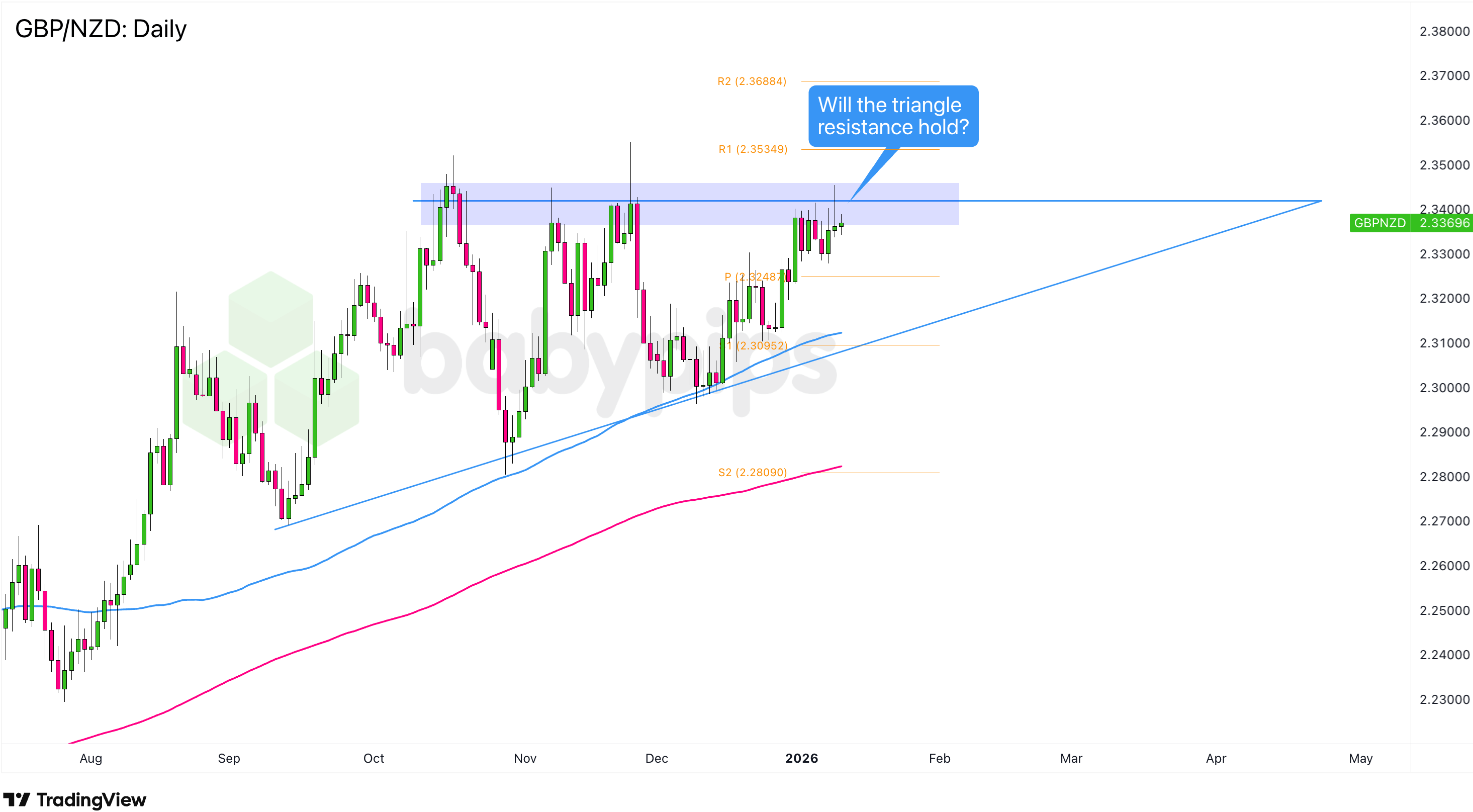 But GBP/NZD, which has been in an uptrend since mid-December, may be running into a ceiling near the 2.3400 psychological handle.