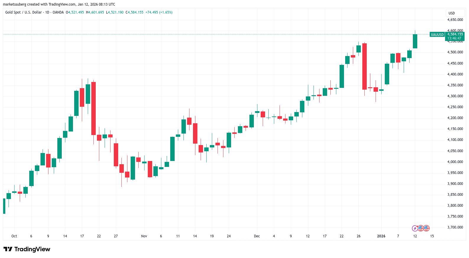 Stock market futures fell immediately after the statement went public, while gold hit new all-time highs of $4,601 per ounce.