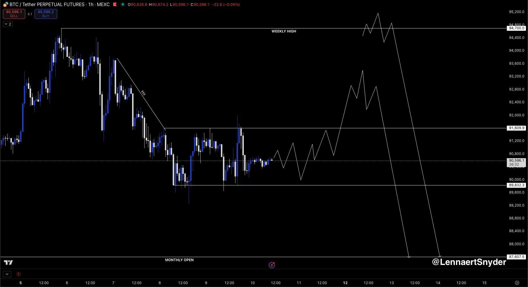 BTC/USDT perpetual futures one-hour chart. Source: Lennaert Snyder/X