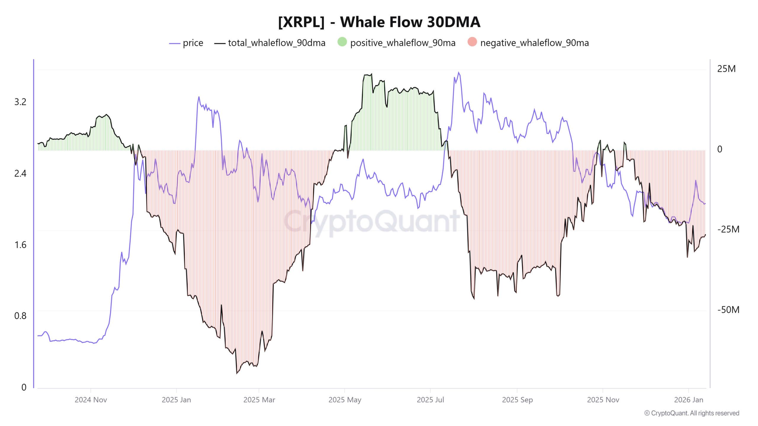 Coincidentally, XRP’s rally last week stalled just below $2.40, where the price was rejected on Jan. 6. The pullback followed more than $100 million in net whale selling between Jan. 4 and Jan. 7. While whale outflows remain elevated, a shift in behavior would need to be seen if XRP retests the $2.40 level.