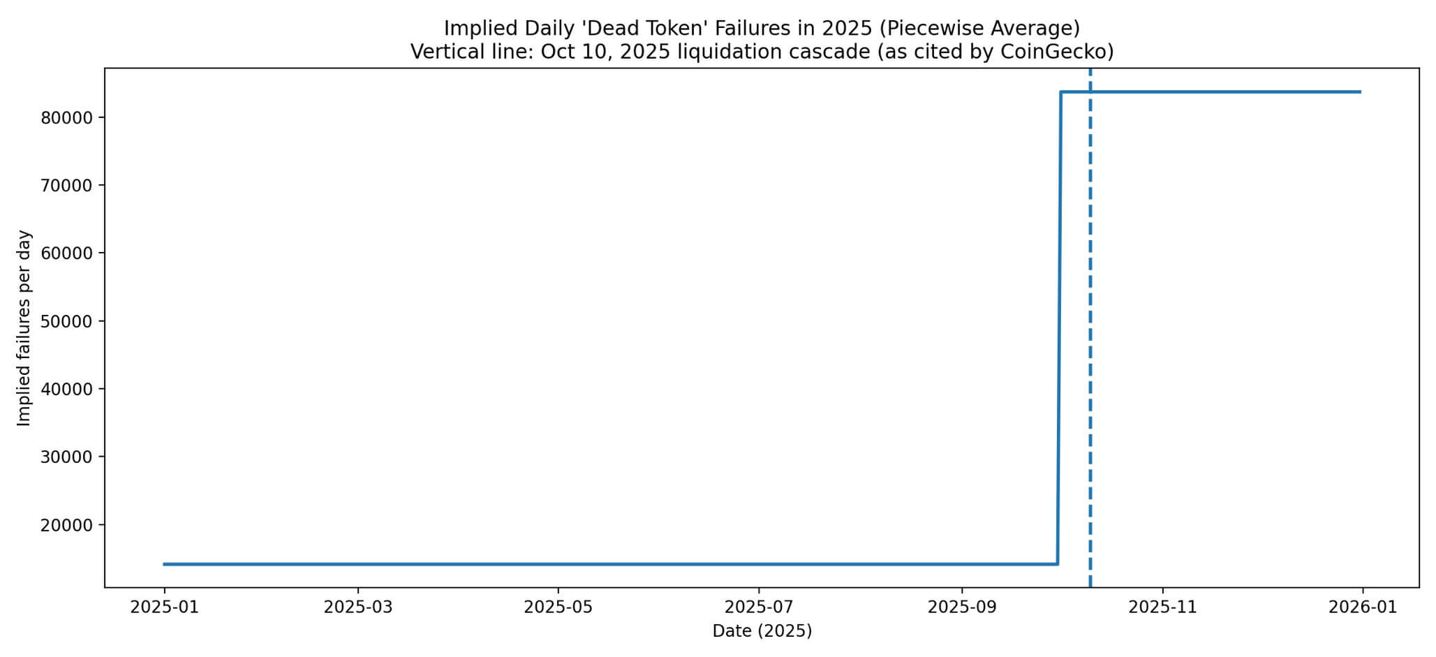 This wasn’t gradual attrition. The fourth quarter of 2025 saw 7.7 million tokens go dark, a pace of roughly 83,700 failures per day. For context, 2024 recorded 1.38 million failures across the entire year.
