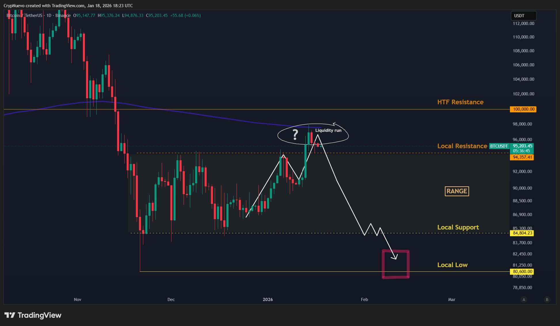 “If price falls back down below $93K-$94K, then this was just a liquidity grab in a larger down trend.”