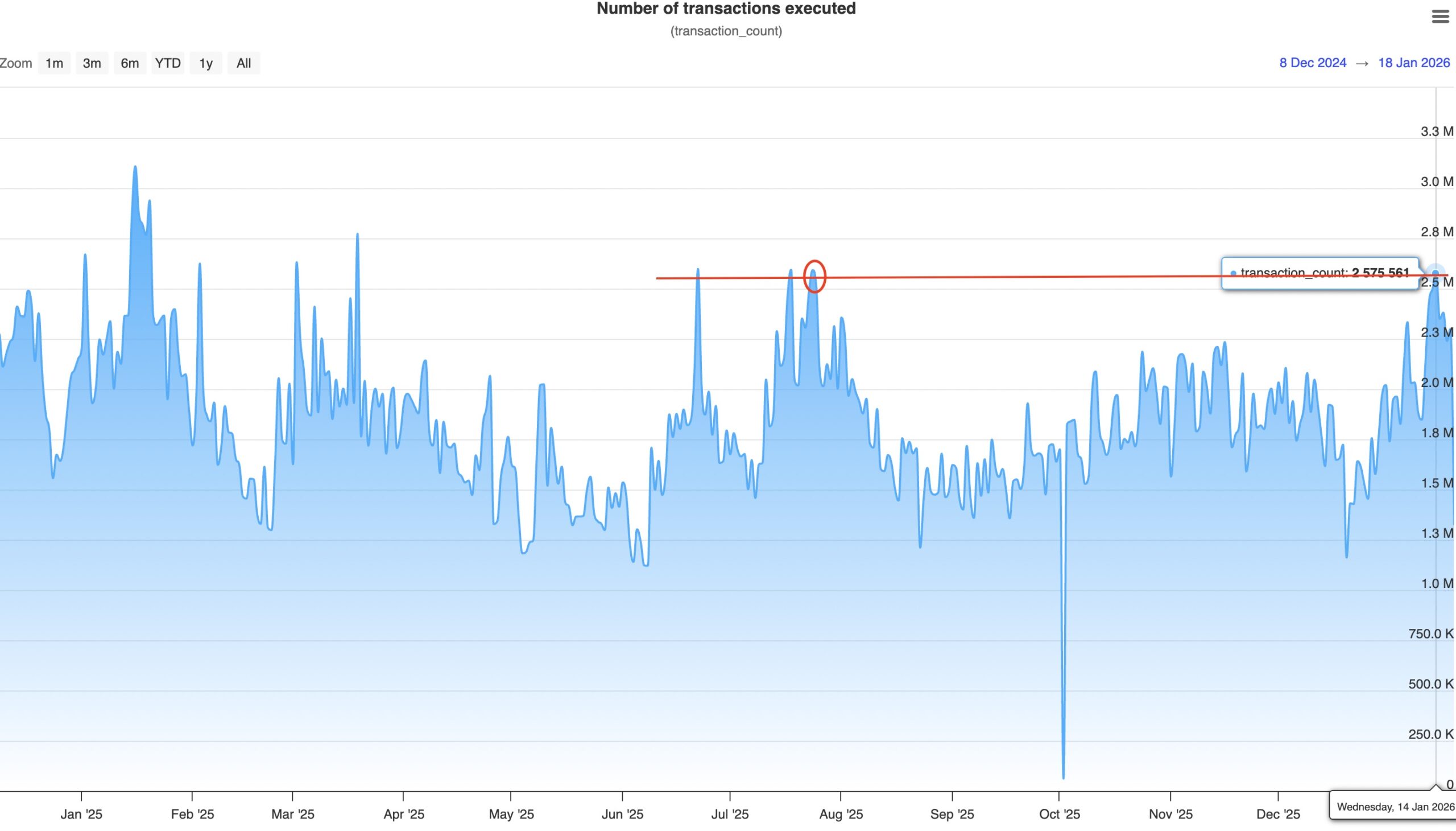 Data from XRPScan shows that the number of transactions executed on the XRP Ledger soared to 2,575,561 on Wednesday, levels last seen in July 2025.