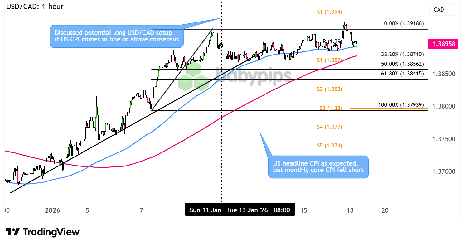 Our bullish USD/CAD setup eyed a short-term rising trend line that could hold as support in the event the U.S. CPI comes in line with expectations or higher. The actual results reflected weaker core inflation, rendering this idea not viable to move beyond the watchlist stage.