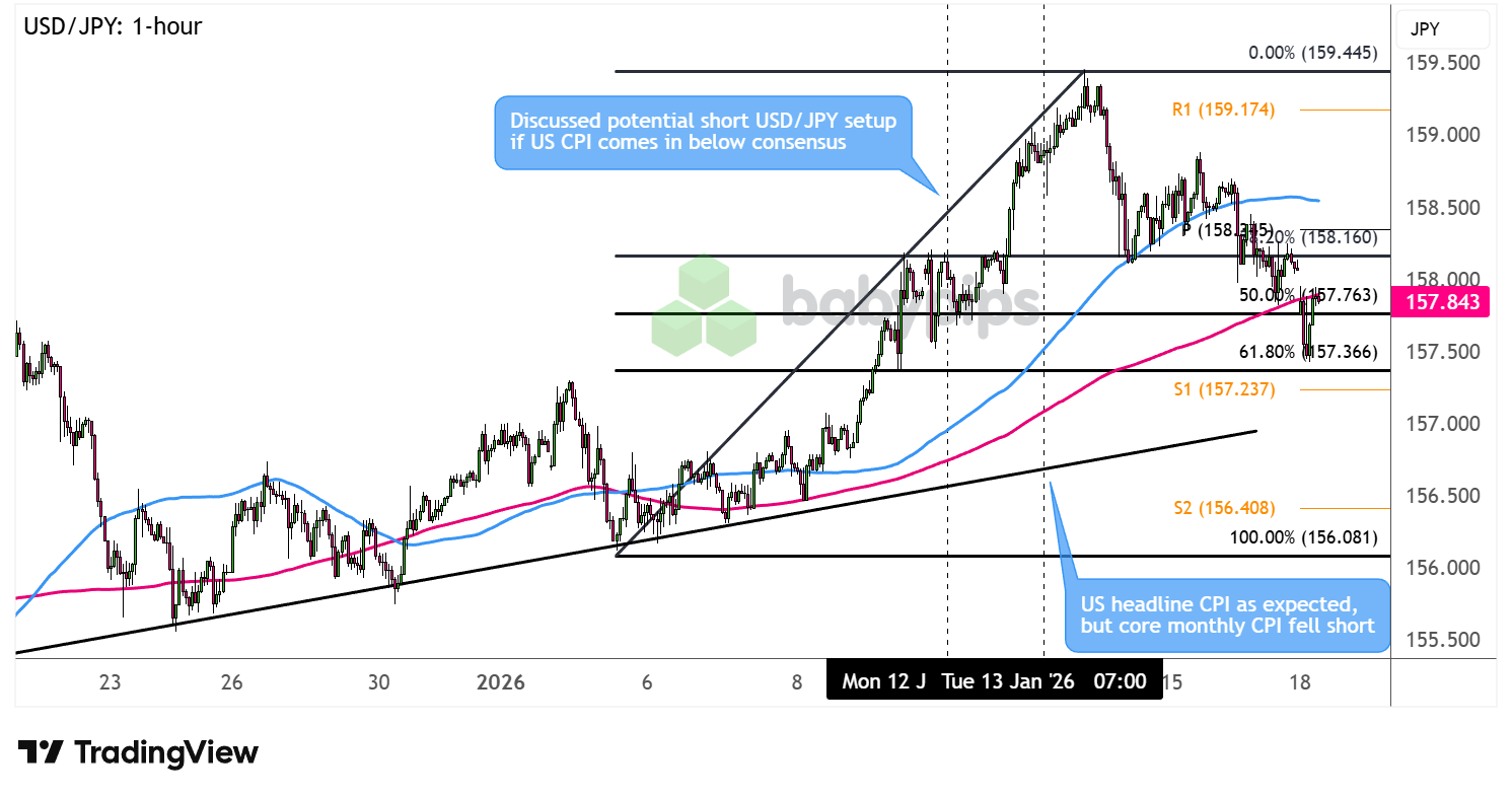 December’s softer core CPI should have fueled dovish Fed repricing and dollar weakness, but political and geopolitical headlines took over. Japan’s snap election chatter, Powell’s DOJ drama, and Trump’s Iran rhetoric dominated attention, pushing inflation data into the background.