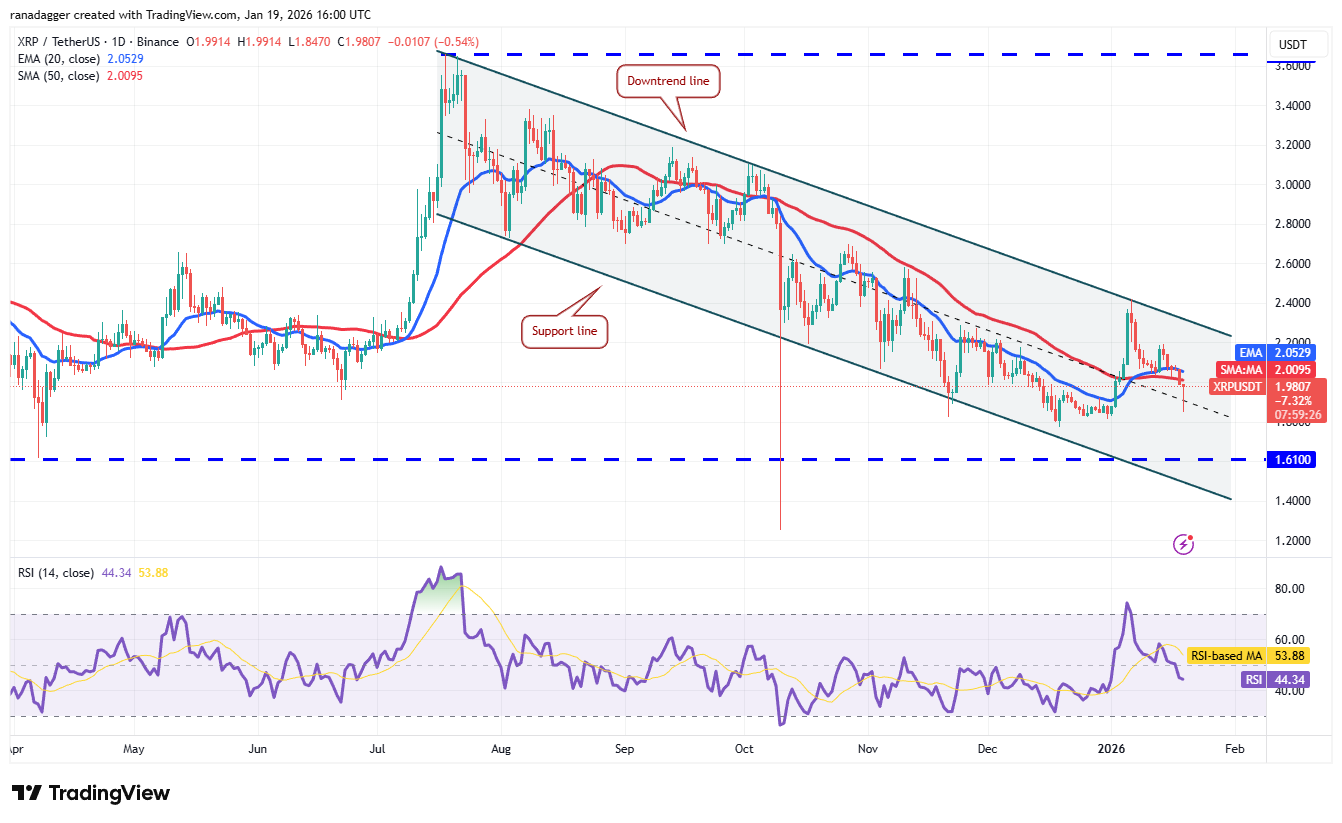 XRP’s (XRP) break below the 50-day SMA ($2) indicates that the bears are back in the game.