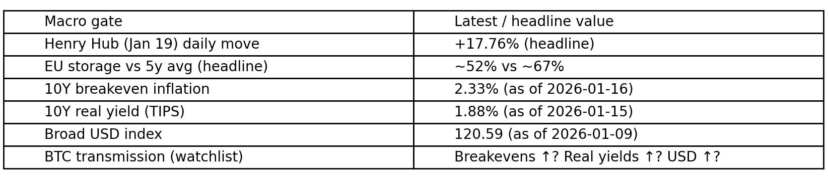 Natural gas spiking 19% in a day doesn’t guarantee Bitcoin will sell off, but it activates transmission channels that can reprice real yields and tighten liquidity.