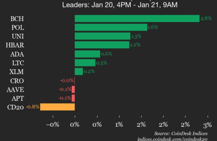 CoinDesk 20 Performance Update: Ethereum (ETH) Drops 2.1%, Leading Index Lower