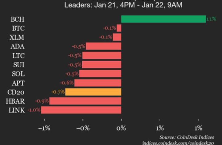 CoinDesk 20 Performance Update: Bitcoin Cash Gains 1.1% While Nearly All Assets Fall