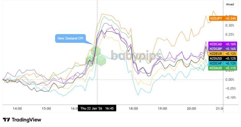 The New Zealand dollar exhibited initial strength following the data release before fading its initial gains roughly an hour later. Still, the currency was able to recover above pre-CPI levels and sustain a more gradual bullish trajectory as the Asian session went on.