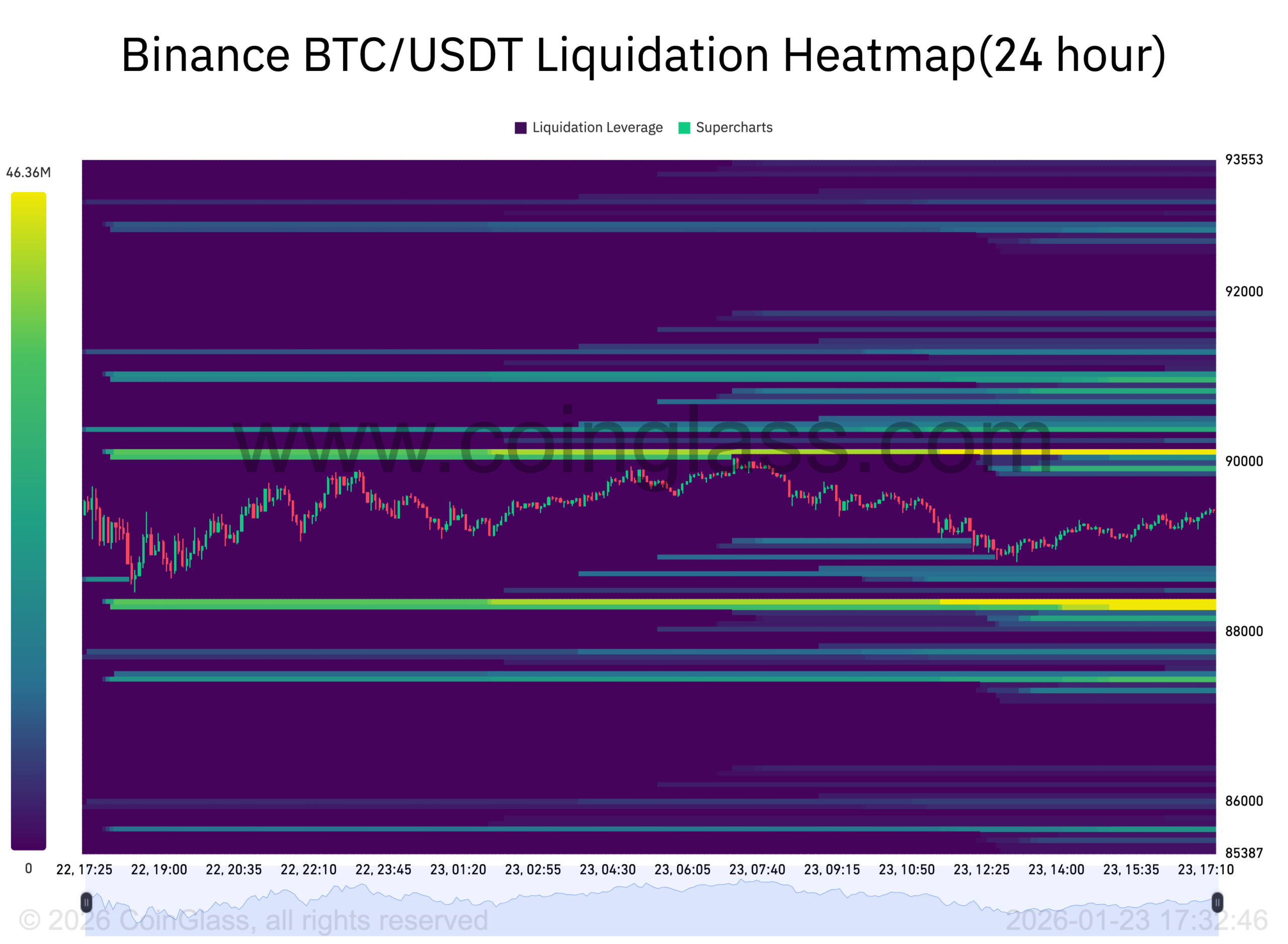 Data from monitoring resource CoinGlass showed thickening liquidation levels at $88,300 and $90,100 as the US trading session approached.