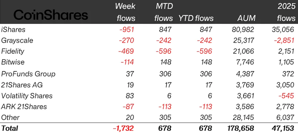 Crypto ETP Outflows Top $1.73B As BTC And ETH Lead Losses