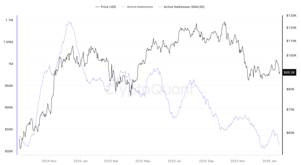 Bitcoin is trading at levels that would have sounded implausible just a few years ago, yet fewer people are actually using the network. On-chain activity has not completely vanished, but it has clearly failed to keep pace with price.