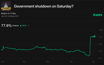 U.S. government shutdown risk has increased significantly. Senate Democrats have pledged to block a major spending bill, raising the probability of a funding lapse by the January 31 deadline. Kalshi traders currently assign a 76% chance to a shutdown happening before month’s end. Historically, government shutdowns tend to create uncertainty that pressures riskier assets while boosting safe havens.
