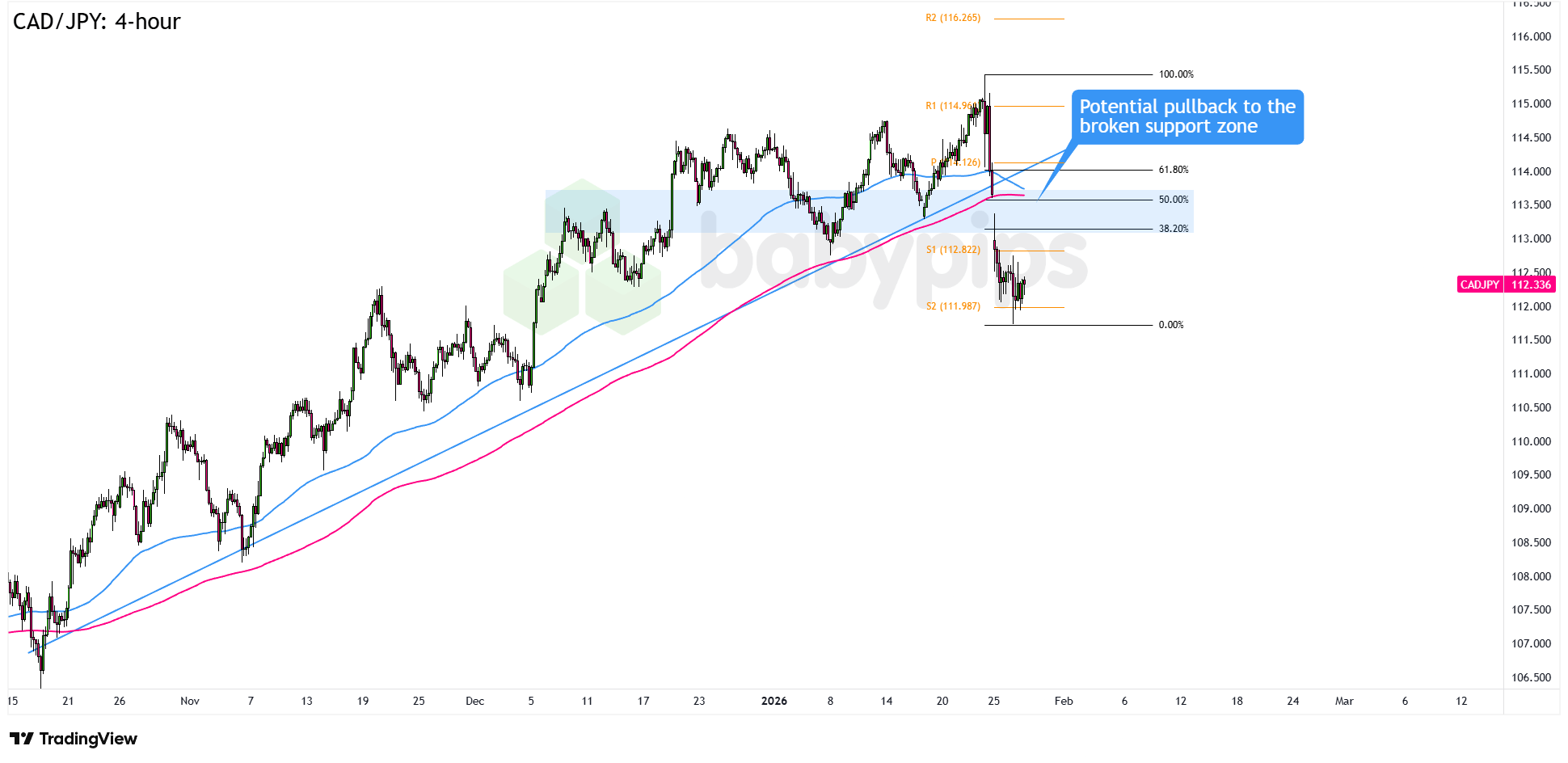On the flip side, a break below 112.00 that pushes CAD/JPY to fresh January lows would signal another leg lower. In that case, downside attention shifts toward the 111.00 area and potentially 110.50.
