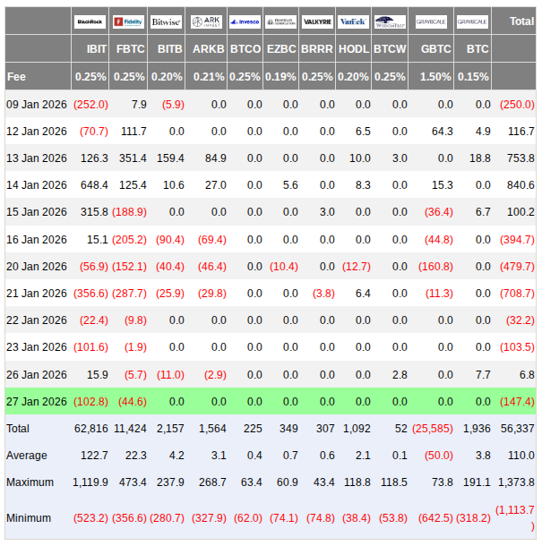 The latest data from UK-based investment company Farside Investors shows net outflows characterizing performance from Jan. 16 onward.