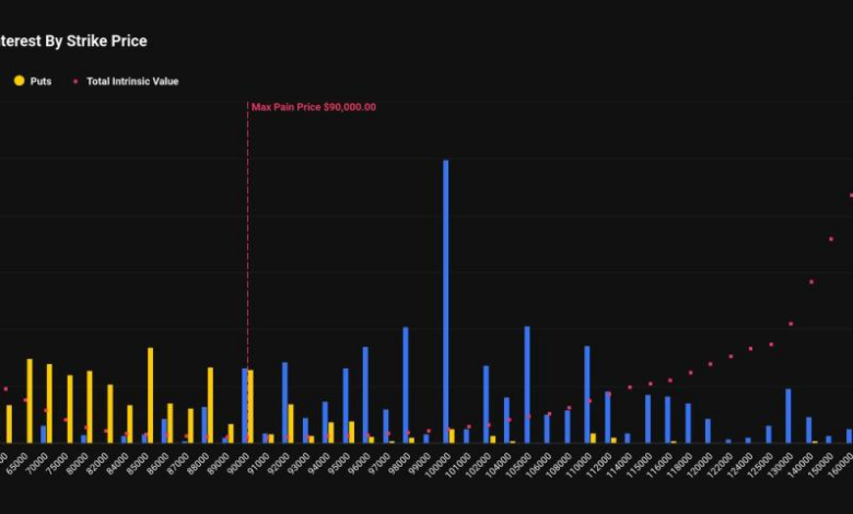 Bitcoin options worth $8.5 billion will expire on Deribit at 8:00 UTC on Friday, the world’s largest crypto exchange by trading volume and open positions. These figures represent the U.S. dollar notional value of active options contracts at press time, with each contract corresponding to one BTC or one ETH.