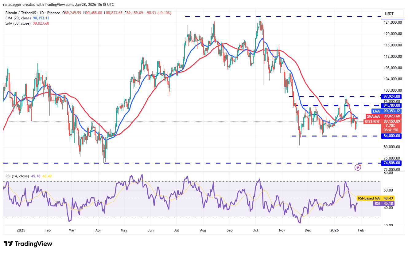 If the price turns down from the moving averages, the BTC/USDT pair may drop to the $84,000 support. Buyers are expected to defend the $84,000 level with all their might, as a close below it may sink the Bitcoin price to $80,600 and eventually to the formidable support at $74,508.