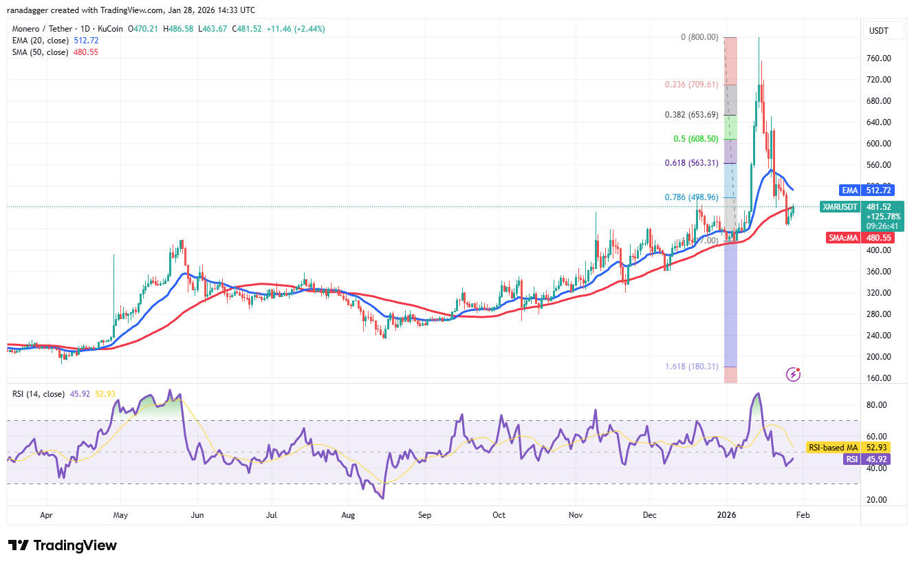 Monero’s (XMR) pullback is facing resistance at the 50-day SMA ($480), indicating that the bears are selling on minor rallies.