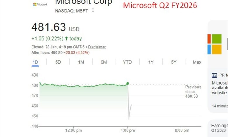 Microsoft Q2 FY2026 beats estimates; Intelligent Cloud tops views as Azure grows 38% ex-FX