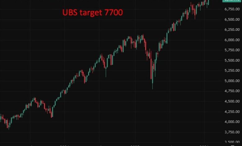 UBS reaffirmed its 7,700 year-end target for the S&P 500, maintaining a constructive outlook for U.S. equities.