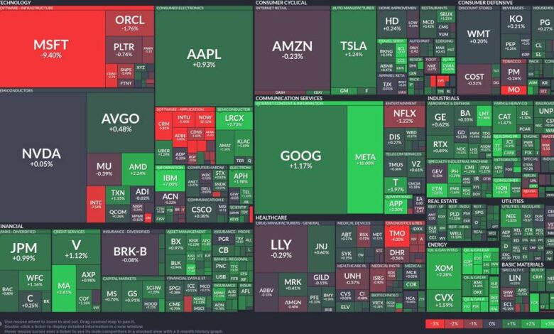 Tech takes a hit: Microsoft drops while Meta soars in mixed market