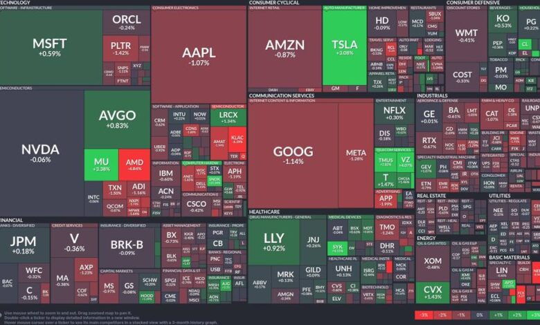 Today’s market exhibits a mixed sentiment, with a cautious eye on technology amidst broader economic uncertainties. Investors are reacting to data releases and are likely balancing portfolios accordingly, given the tech sector’s volatility.