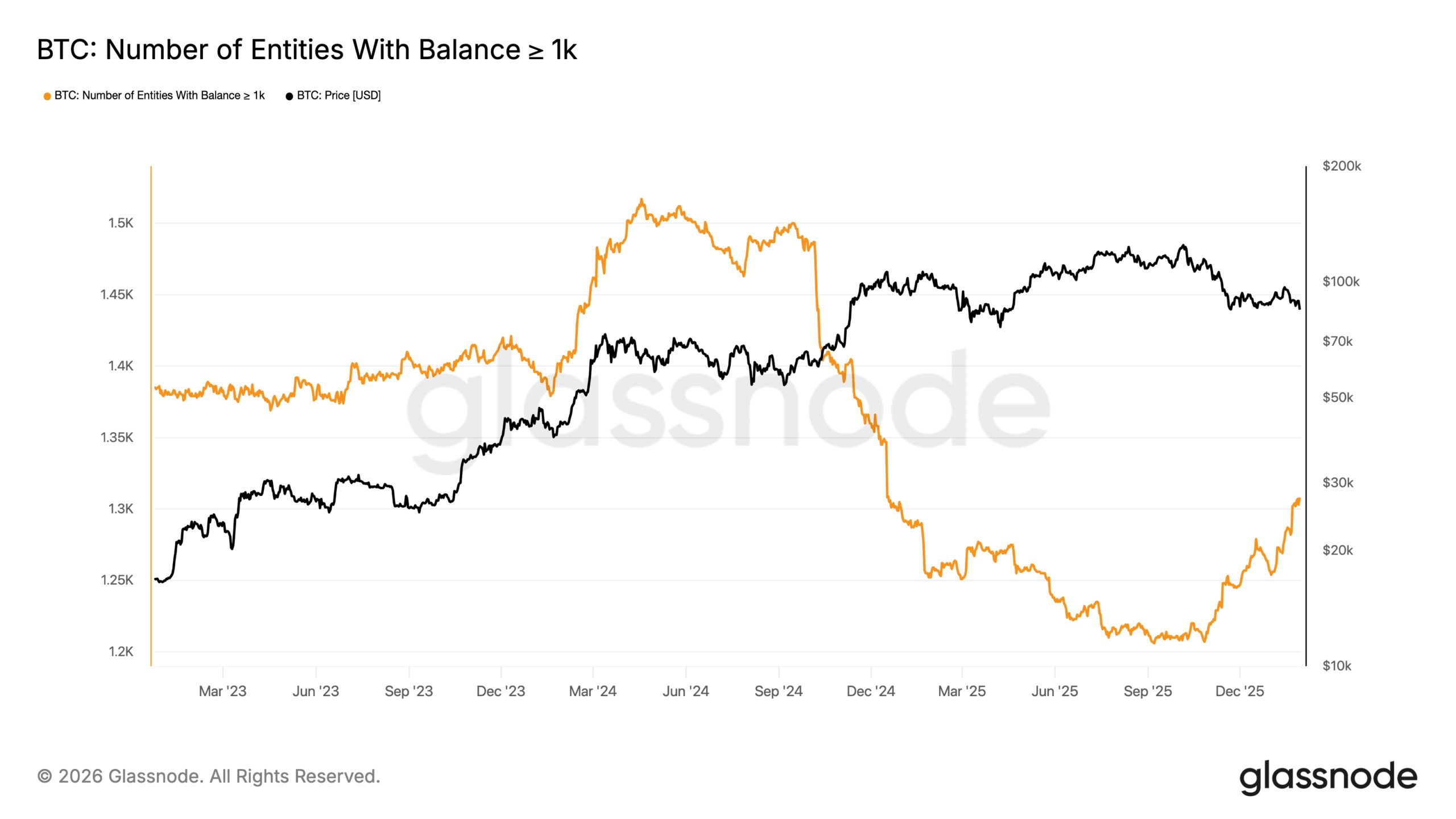 At the same time, the number of unique entities holding at least 1,000 BTC has increased from 1,207 in October to 1,303.