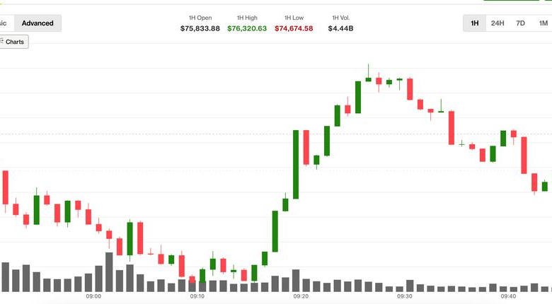Bitcoin rebounds above $75,000 after brief slide as thin liquidity keeps traders on edge