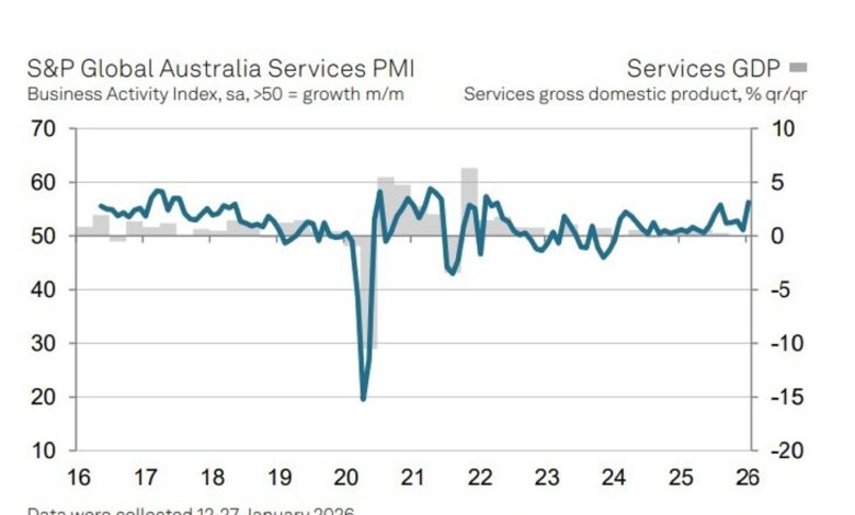 Australia’s services sector began 2026 on a strong footing, recording its fastest expansion in activity in almost four years, as a sharp rise in new business lifted output and prompted firms to step up hiring. The latest PMI data showed services activity accelerating well above the 50-mark that separates growth from contraction, extending the sector’s expansionary run to two years and marking the strongest reading since early 2022.