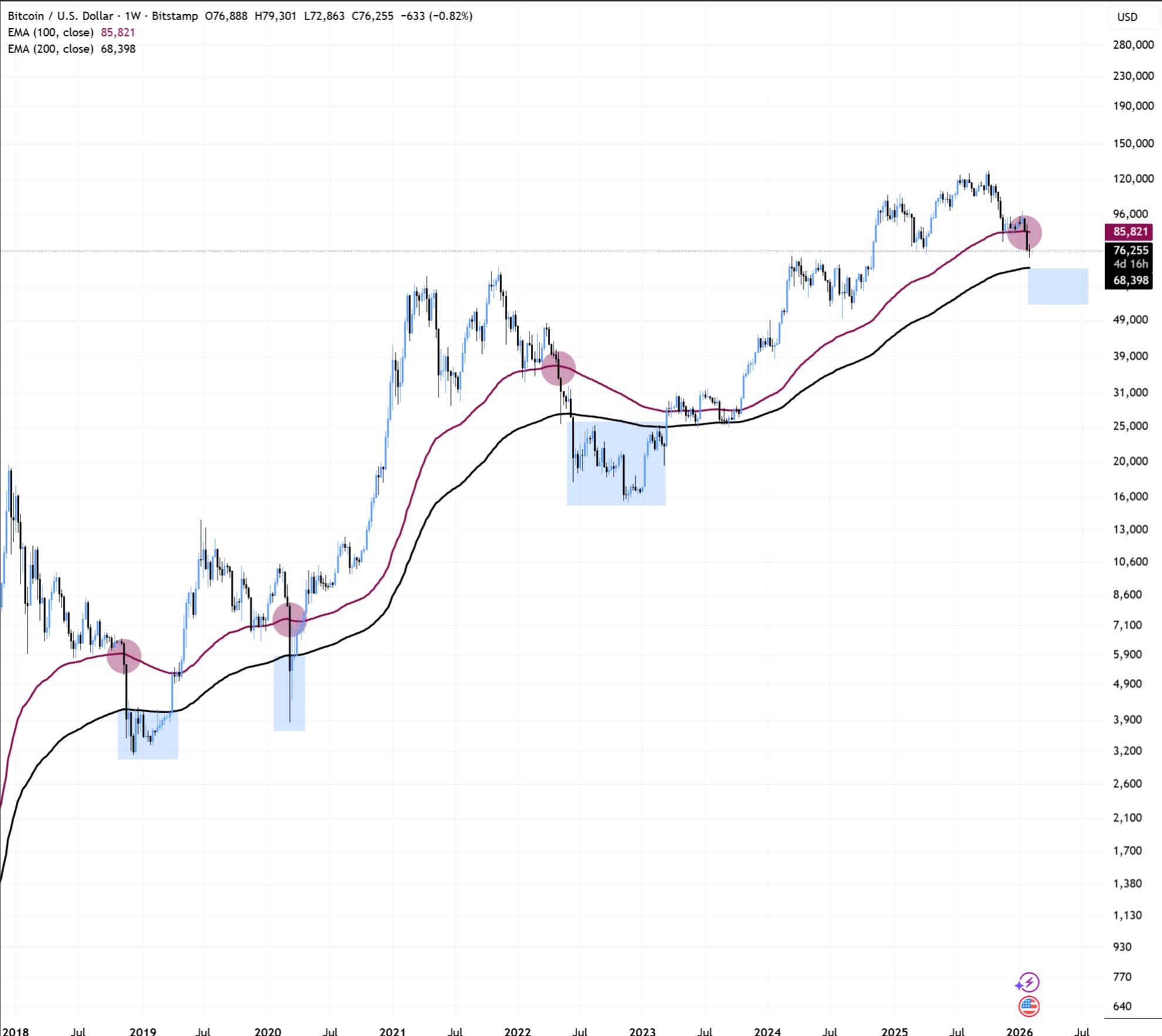 The latest analysis increasingly expects Bitcoin to test its 200-week exponential moving average (EMA) at $68,400.