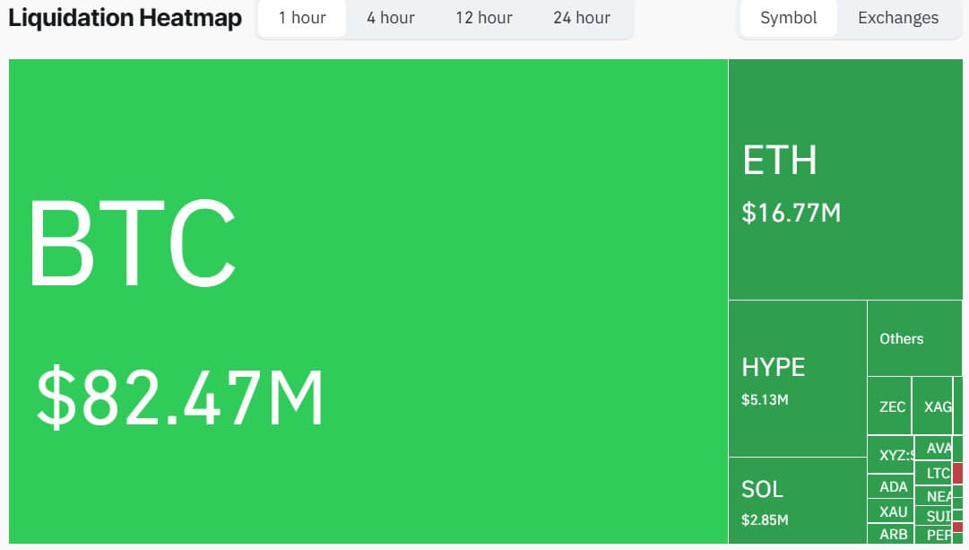 Bitcoin-linked contracts bore the brunt of the losses, with liquidations totaling more than $86 million. Ethereum traders closed approximately $16 million in positions, while bets tied to Solana and the HYPE token were liquidated for approximately $3 million and $6 million, respectively.