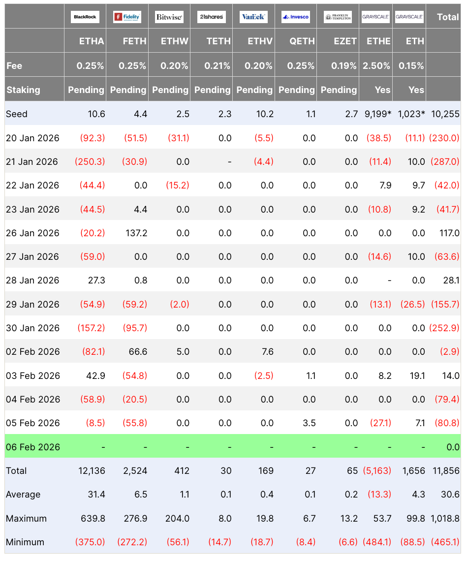 Spot Ethereum ETFs flows table. Source: Farside Investors