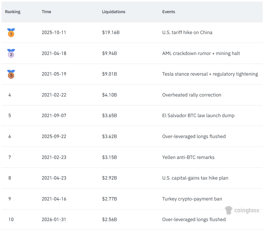 The renewed activity comes against the backdrop of a sharp market selloff. Crypto markets logged their 10th-largest liquidation event on record last week, with roughly $2.56 billion in leveraged positions wiped out, according to data from Coinglass.