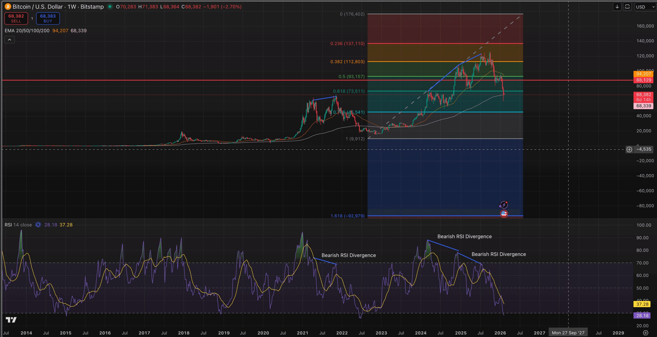 - Bitcoin is testing the 200-week exponential moving average (~$68,339), a critical support level to prevent an extended structural drawdown.