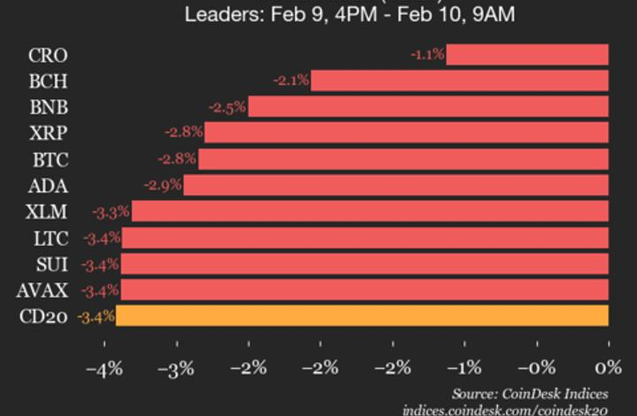 Leaders: CRO (-1.1%) and BCH (-2.1%).