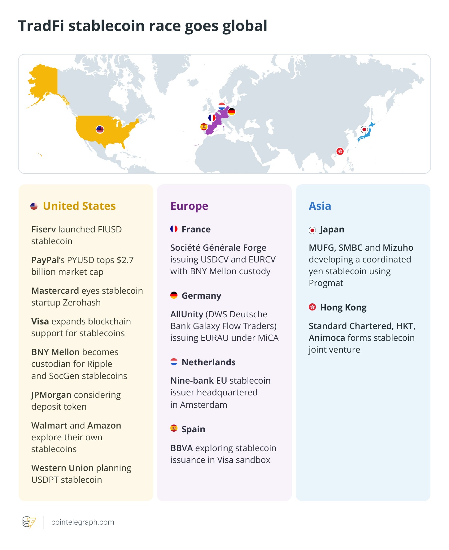 Fiserv has also expanded its footprint in digital assets. As Cointelegraph reported in October, the company is involved in North Dakota’s state-backed stablecoin initiative, where it is providing payments and settlement infrastructure to support the project’s rollout.