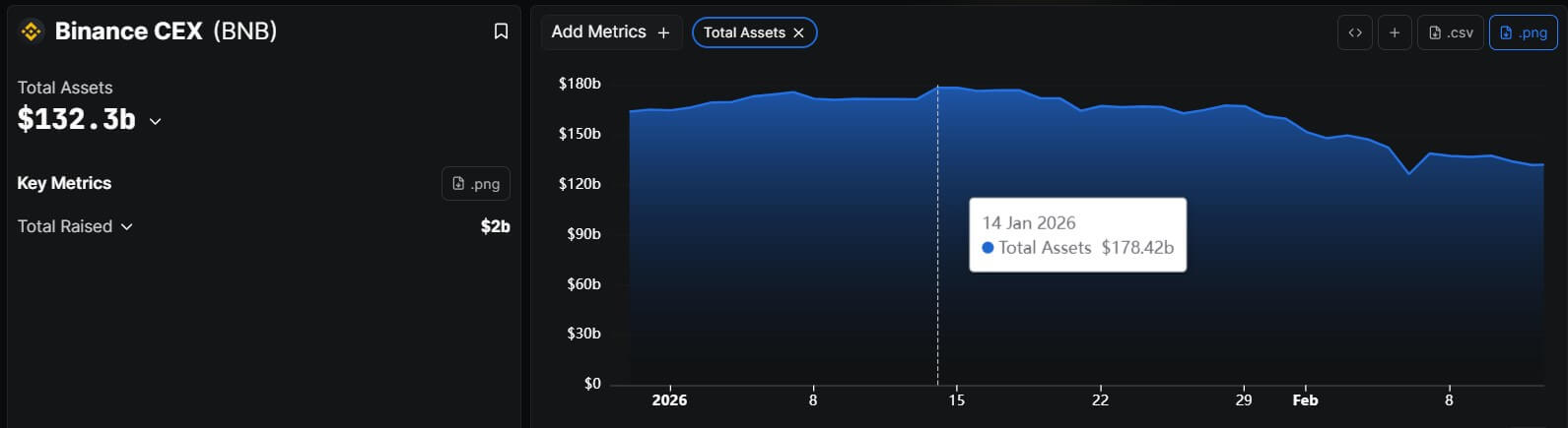 Moreover, much of the current fear was driven by a chart showing a decline in total asset value. DeFiLlama data indicated that Binance’s total assets peaked at more than $178 billion earlier this year before declining by approximately $40 billion to the current $132 billion level.